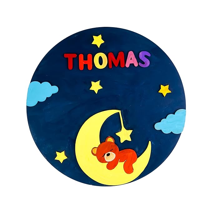 - CREATIVE DESIGN: Features a charming moon-themed base with stars and decorative elements perfect for personalized name art and wall decor