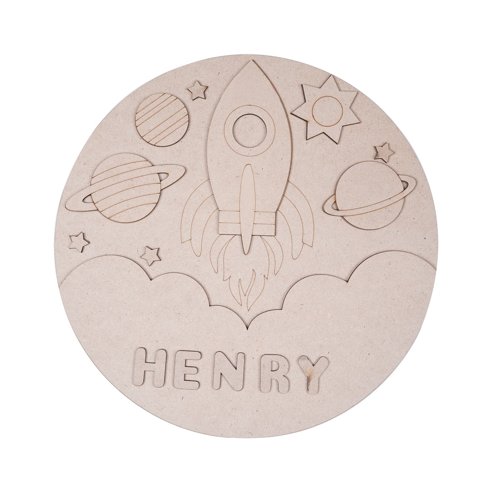 The set features a beautifully pre-marked 30 cm circular base with an elegant Spaceship design, perfect for creating personalized name plates or decorative pieces.
