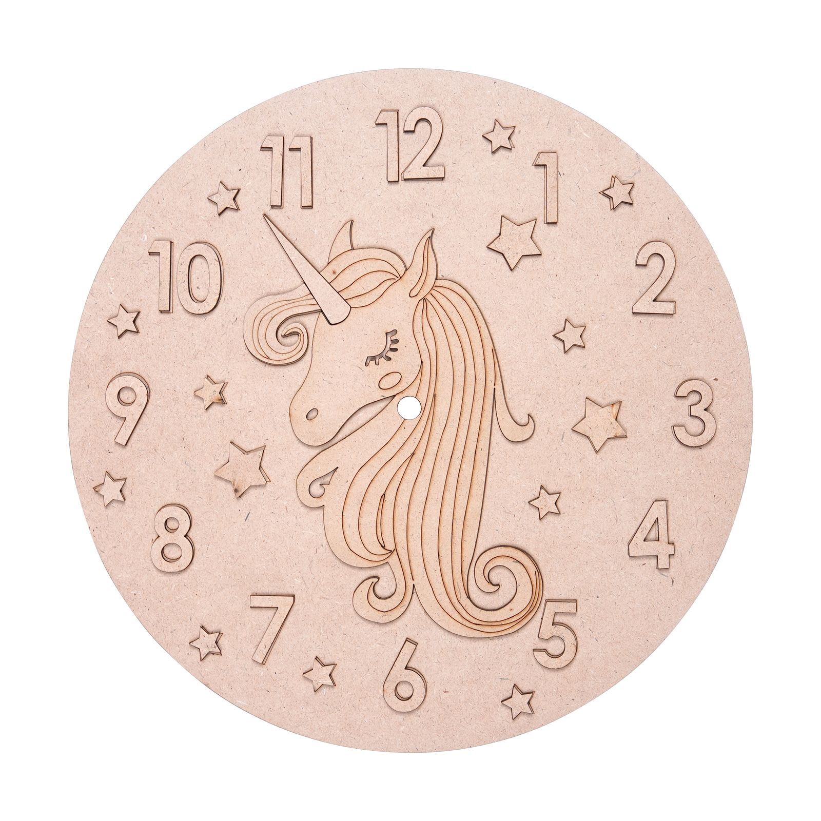 🦄 DIY Unicorn-Themed Clock – Unique circular MDF wall clock with a unicorn and stars design, ready for kids to paint.