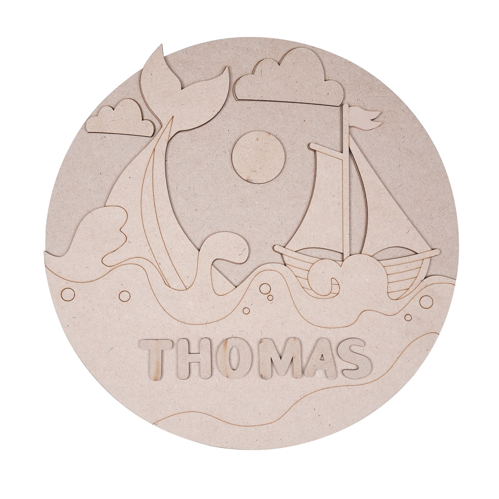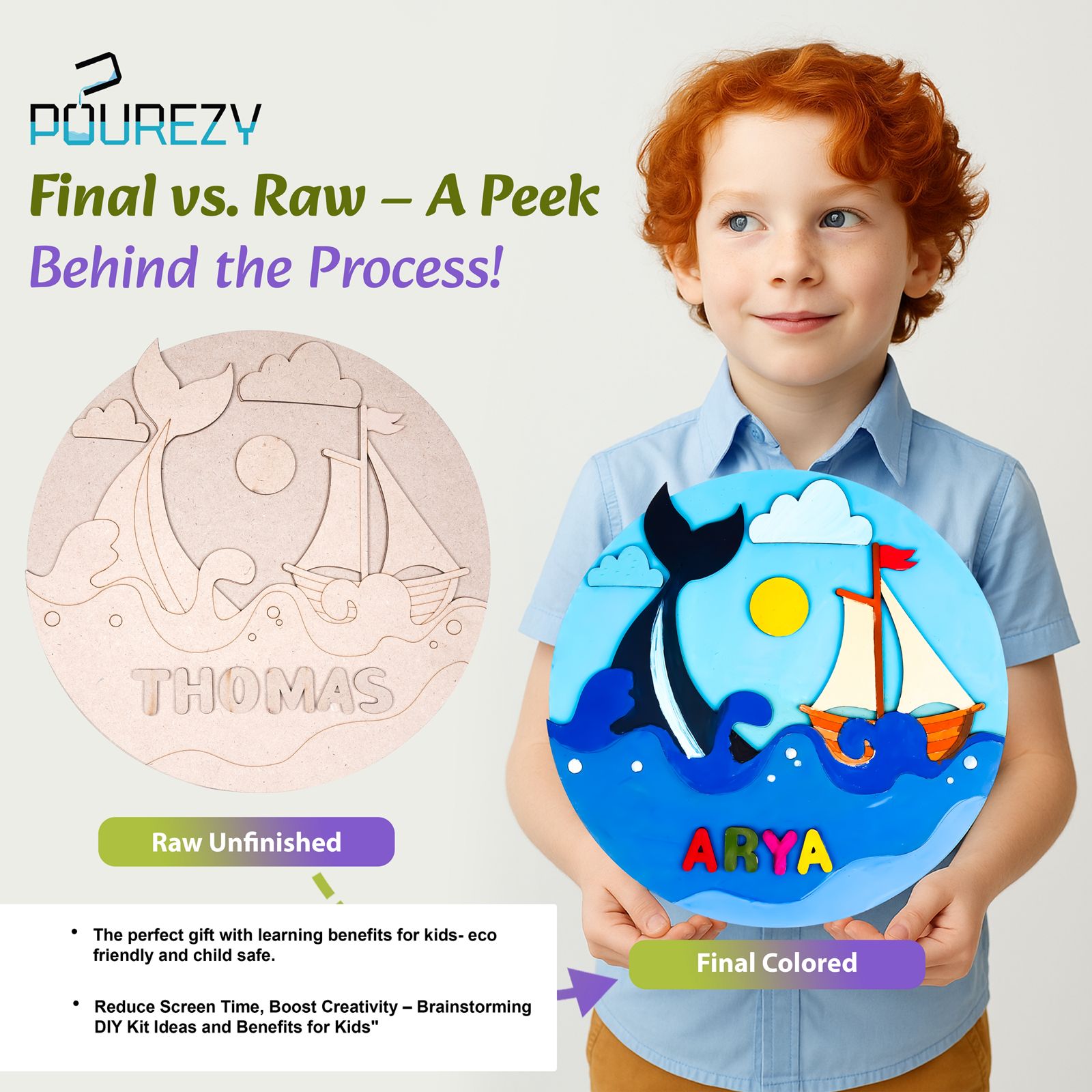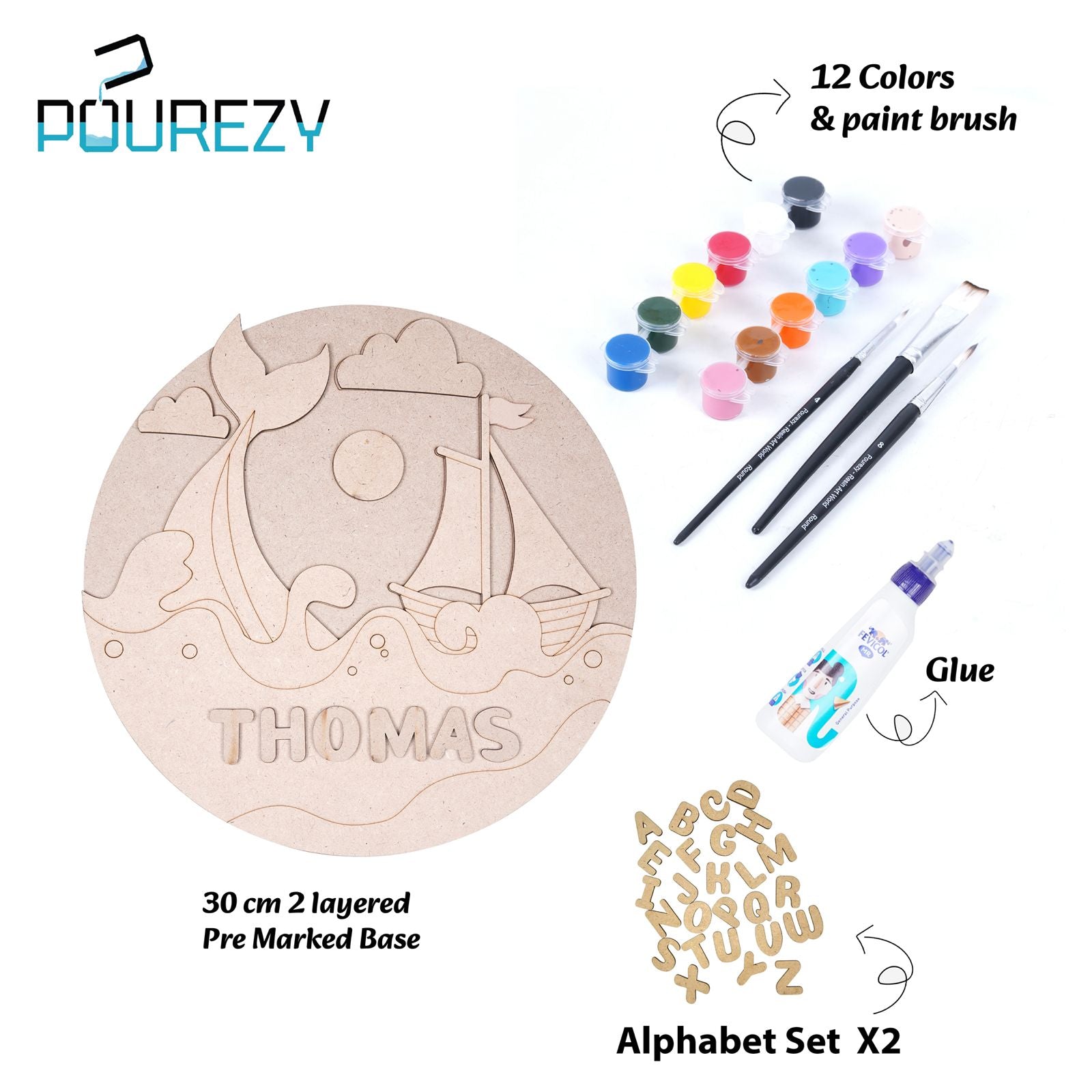 - COMPLETE DIY KIT: Includes 30 cm pre-marked MDF base with ship design, 12 vibrant paint colours, paint brushes, glue and 2 sets of alphabet letters for personalization