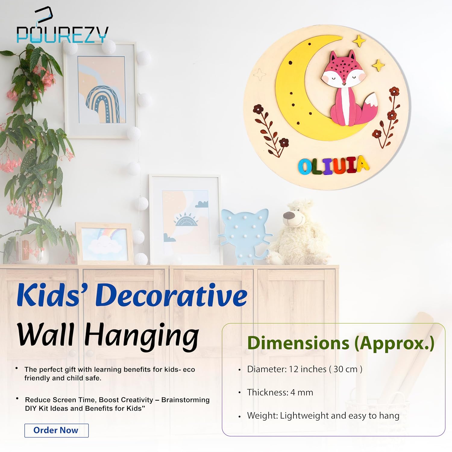 - CUSTOMISABLE DESIGN: Features a charming moon and fox theme with decorative stars and floral elements, perfect for creating a personalised name plate