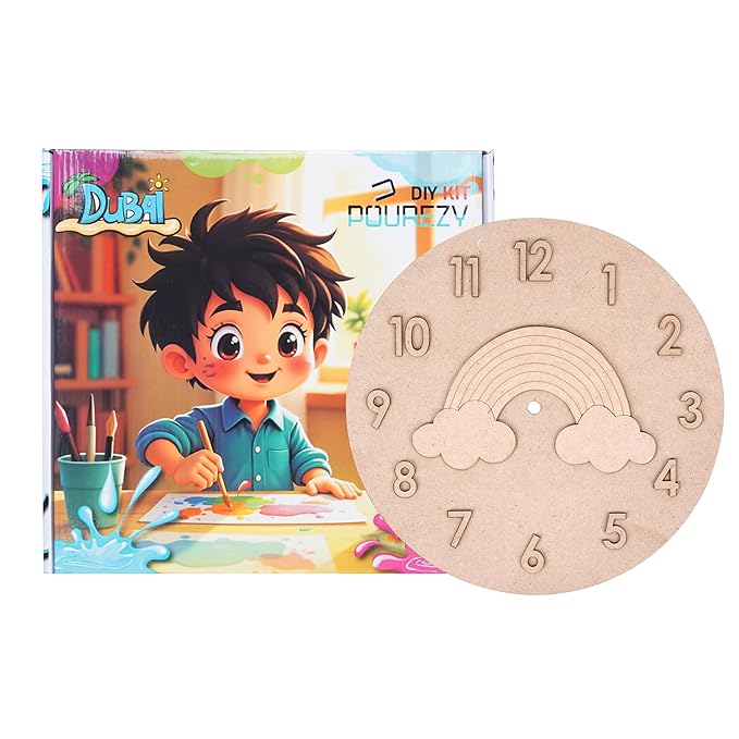 This paintable MDF clock base is engraved with a cheerful rainbow and fluffy clouds — a perfect canvas for kids to paint, decorate, and assemble into a real working clock. Made with smooth, child-safe materials, this kit provides hands-on learning, fun, and a sense of accomplishment. Ideal for hobby time, school crafts, or gifting.